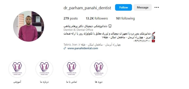- آدرس: تبریز – چهار راه آبرسان – ساختمان اسکان یک – طبقه ۷ – مطب دندانپزشکی دکتر پرهام پناهی