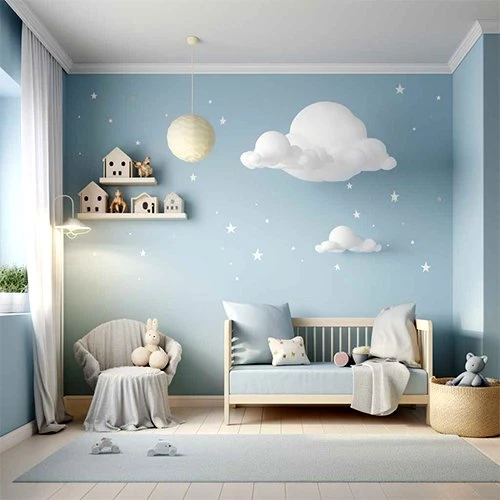 استفاده از هنر دیواری و تصاویر کودکانه میتواند به زیبایی اتاق بیفزاید. تصاویر حیوانات، طبیعت، یا شخصیتهای کارتونی مورد علاقه کودکان میتوانند جذابیت بیشتری به دیوارها بدهند و سرزمین عجایب کوچک او را خلق کند.