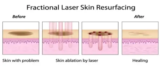 لیزر فرکشنال در سه مرحله بر روی پوست تاثیر میگذارد. اول با تابیدن اشعه به لایه میانی پوست برای کلاژن سازی تحریک میشود. در مرحله بعدی لیزر بافتهای آسیب دیده را تخریب میکند و راه را برای بازسازی هموارتر میکند؛ و در آخر هم لایه برداری سطحی را انجام میدهد.