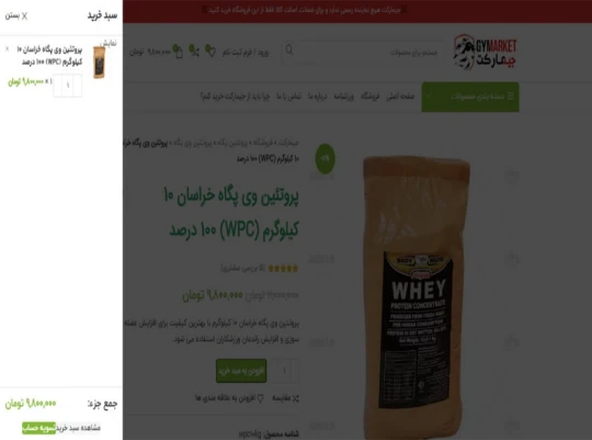 انتخاب محصول: در صفحه جزئیات محصول، گزینههای مختلف مانند وزن یا طعم را انتخاب کنید.