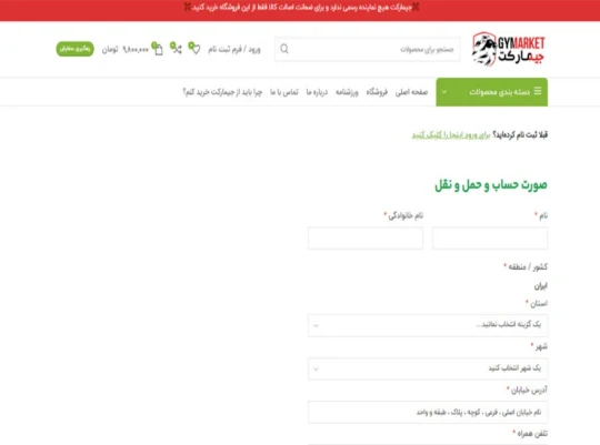 مراجعه به سایت: ابتدا به سایت gymarket.ir مراجعه کنید.